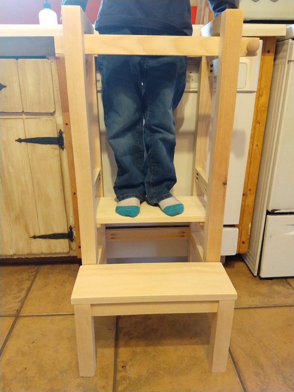 When using a learning tower, it's important to supervise your child at all times to ensure that they're using it safely and properly. This includes ensuring that the learning tower is on a stable surface and that the child is standing securely inside the tower.